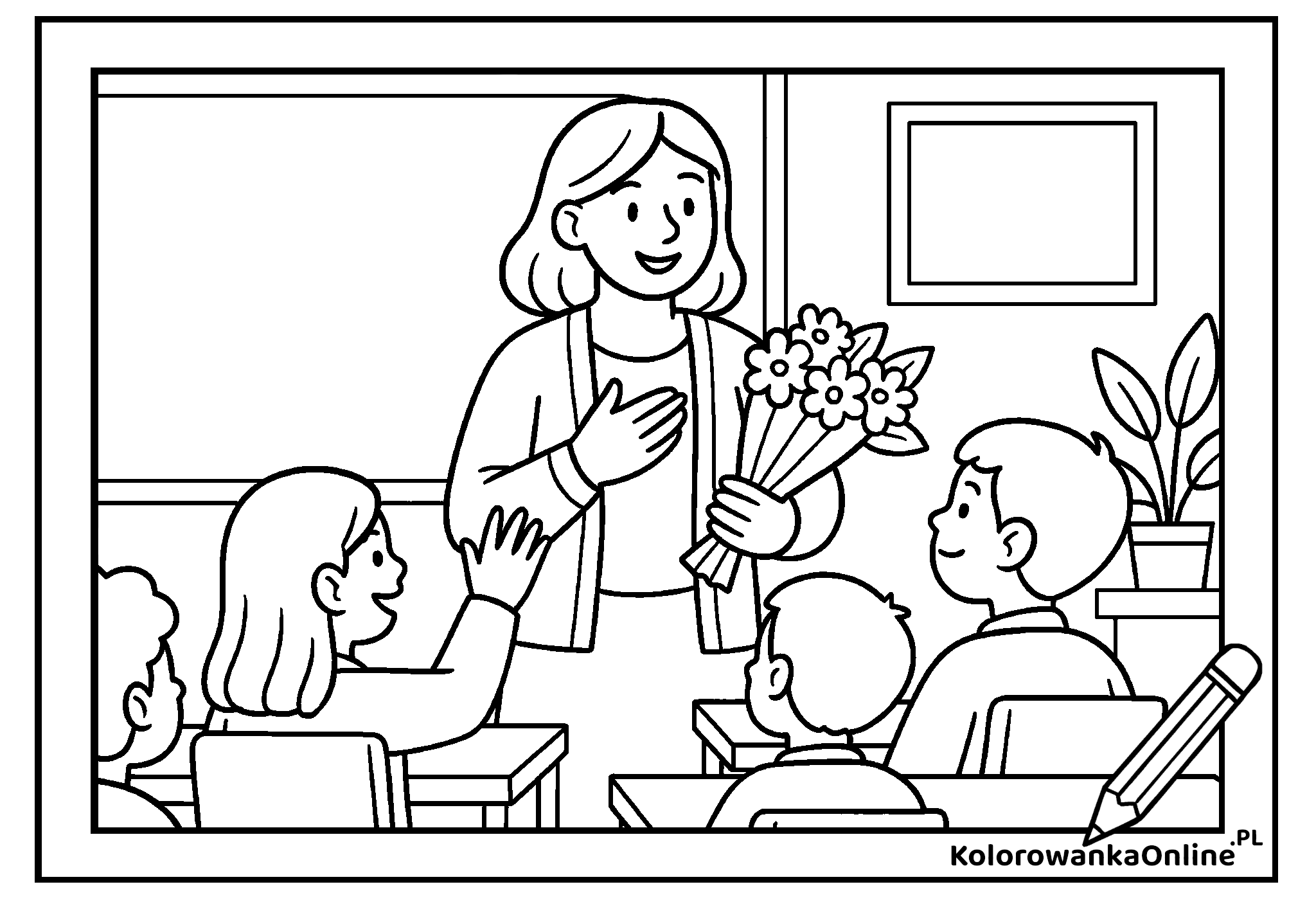 Kolorowanka Nauczyciel matematyki przedstawia nauczyciela tłumaczącego proste działania matematyczne – na tablicy widać liczby i znaki, a dzieci uczą się z zaangażowaniem. To idealna kolorowanka do druku dla dzieci w wieku szkolnym, które uczą się dodawania i odejmowania. Kolorowanka online Nauczyciel matematyki to edukacyjna i kreatywna zabawa, która rozwija koncentrację i ciekawość świata liczb.