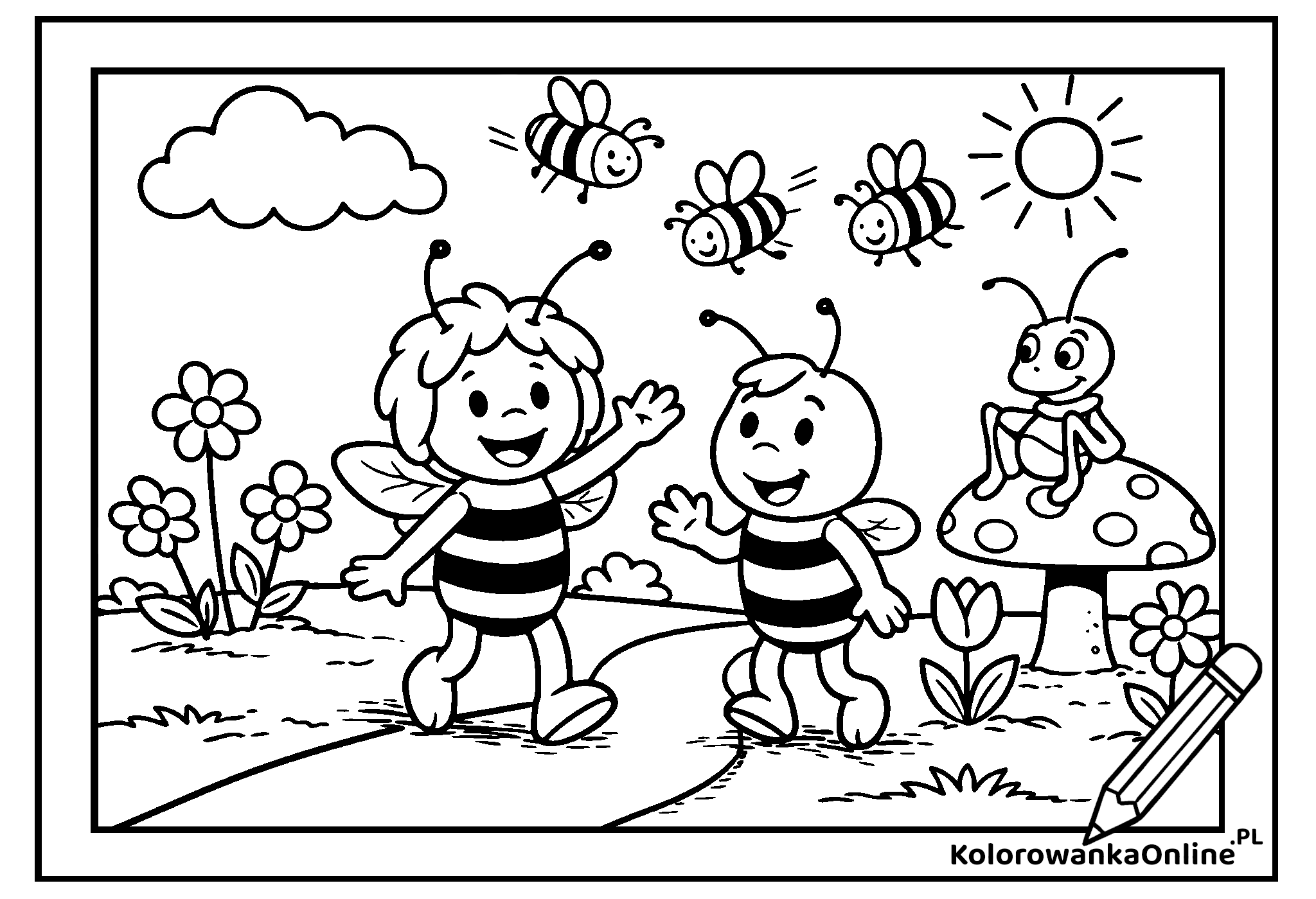Kolorowanka Przyjazny Reksio przedstawia radosnego Reksia machającego do nas, w towarzystwie kotka i żabek, na tle sielskiego krajobrazu. Przyjazna atmosfera, sympatyczne zwierzęta i spokojna sceneria sprawiają, że to idealna kolorowanka do druku oraz kolorowanka online dla dzieci. Kolorowanie Reksia rozwija kreatywność, wyobraźnię i pozwala cieszyć się beztroską, bajkową zabawą.