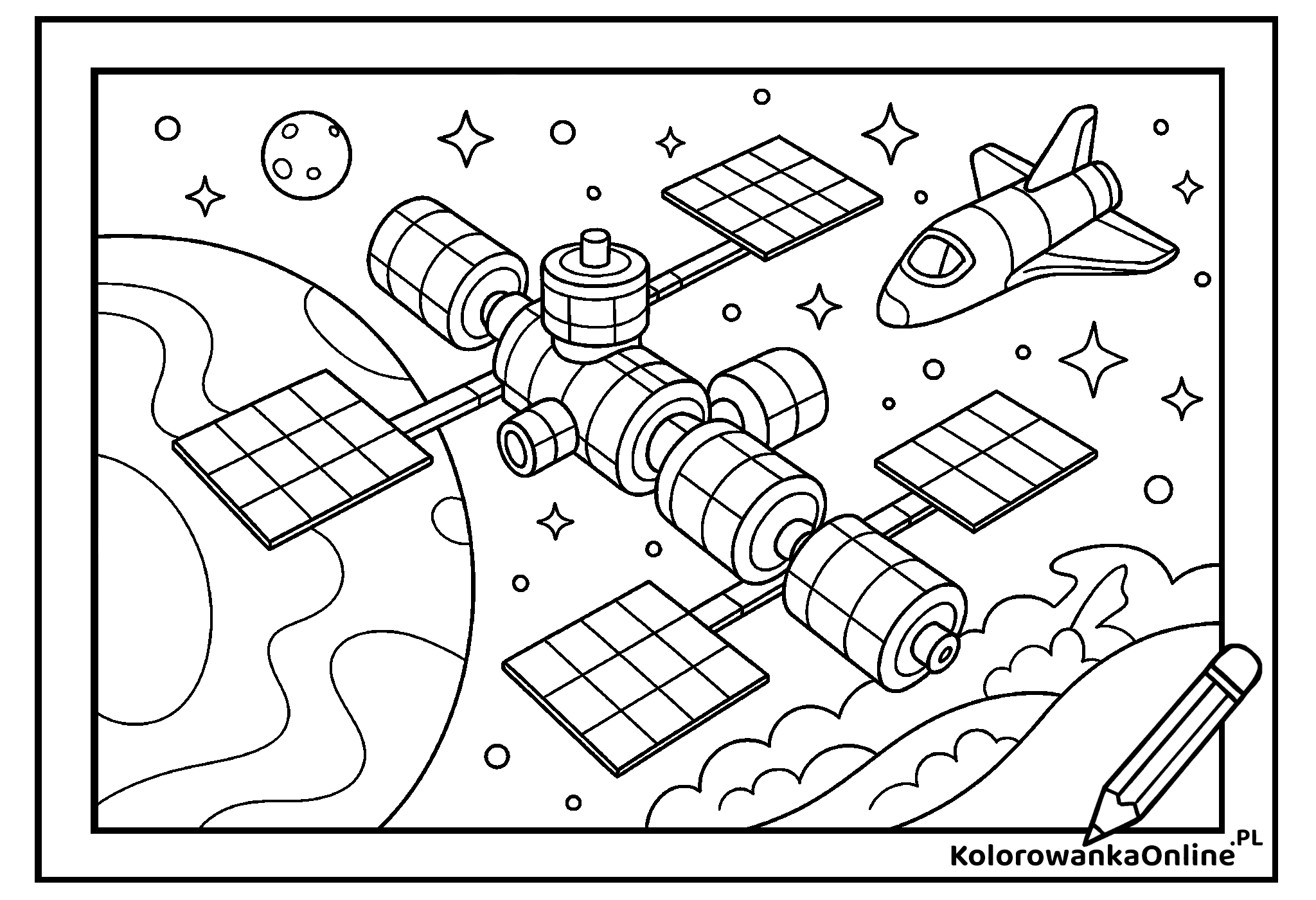 Kolorowanka do druku Stacja kosmiczna w przestrzeni