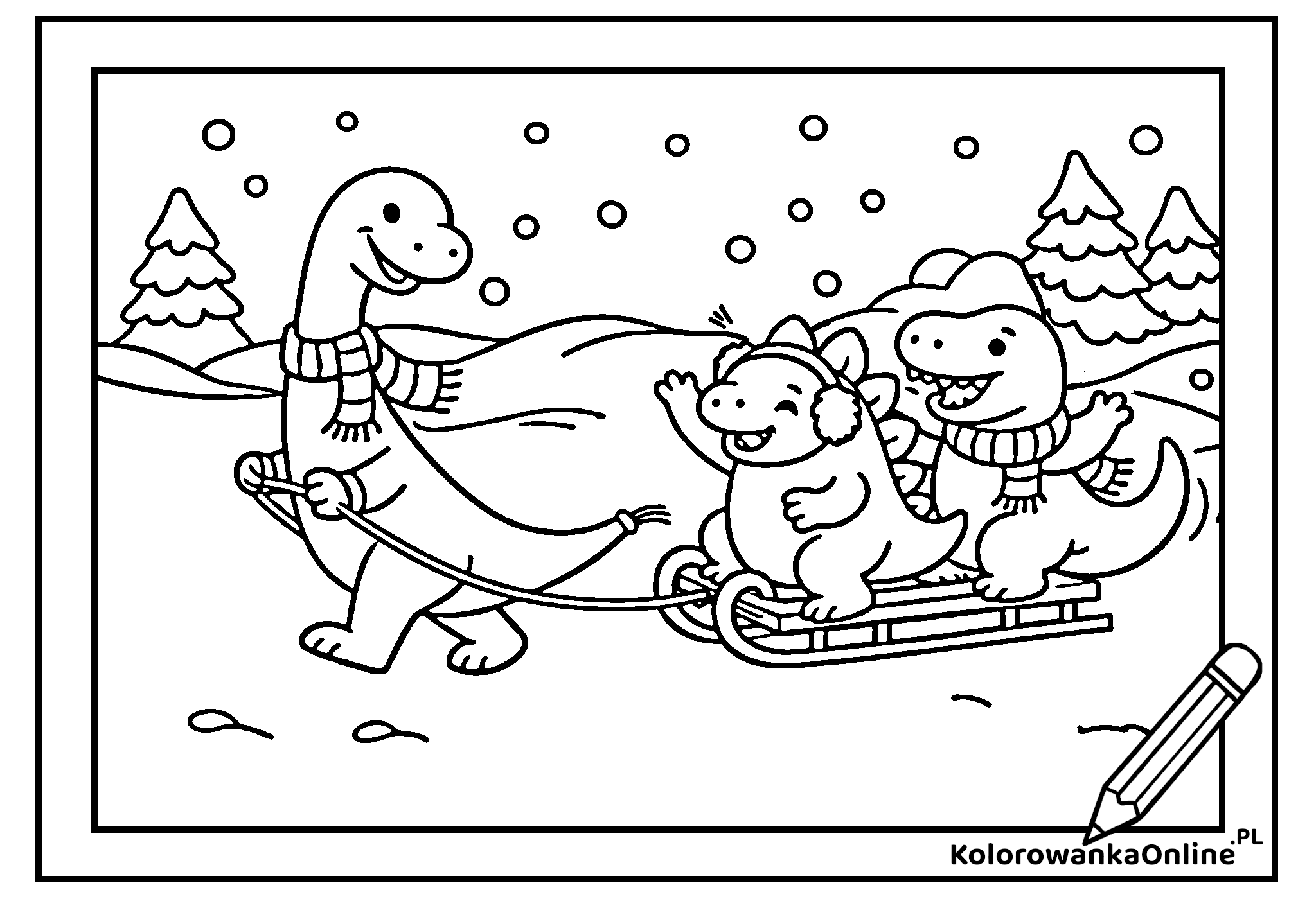 dinozaury sanki zima